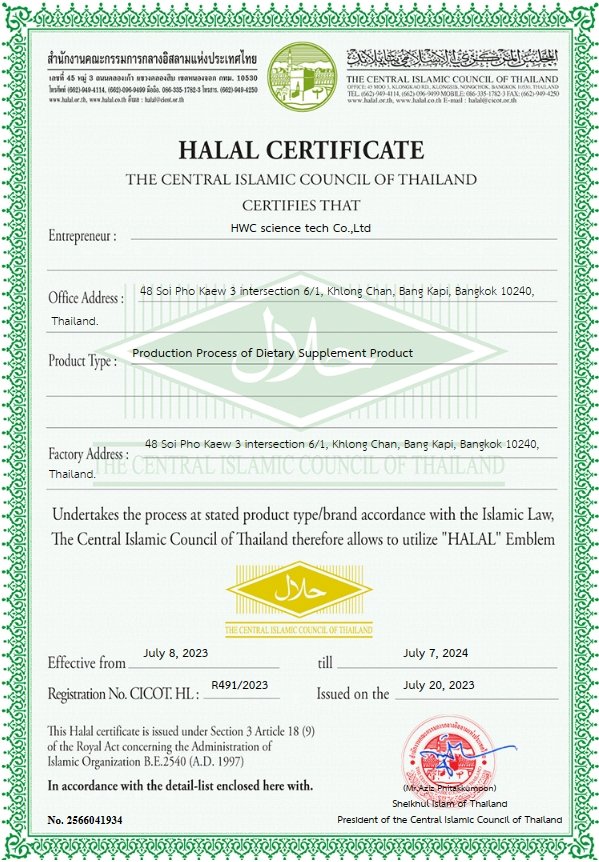 HWC สามารถผลิตผลิตภัณฑ์เสริมอาหารในรูปแบบต่างๆไม่ว่าจะเป็นรูปแบบเม็ดแคปซูล